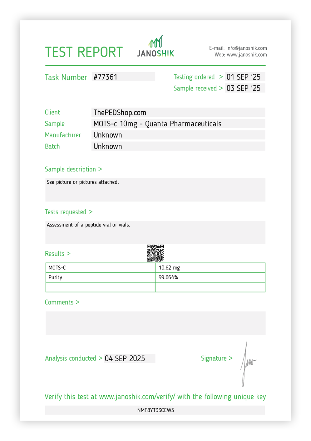 Click to enlarge the test report for a closer view.